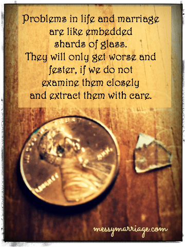 But what if God was using those issues to get our attention to do something proactive like “pulling a shard of glass out of our hand” . . . Or facing a hard conversation in marriage, or “eating some humble pie” by apologizing to our mate, etc.?