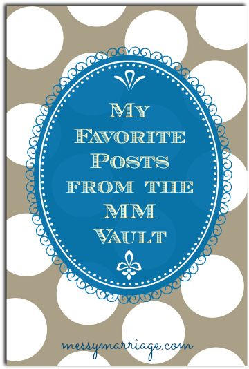 I’d like to share ten of my favorite posts (in no particular order) that I’ve done here at Messy Marriage. Most are recent, but there are a few that go a bit further back in the vault. I hope you find them to be encouraging, thought-provoking and marriage-challenging!