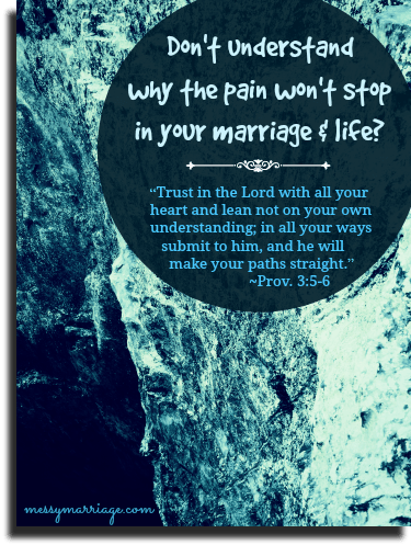 When I was really struggling in my marriage, I would say that I wanted to trust God. I even looked to Him for understanding of my life and marriage on a regular and daily basis. But if and when His will didn’t make sense to me or my responsibility to my husband felt too hard or unfair, I tried to manage the problem (typically I thought my hubby was “the problem”) in my own way.